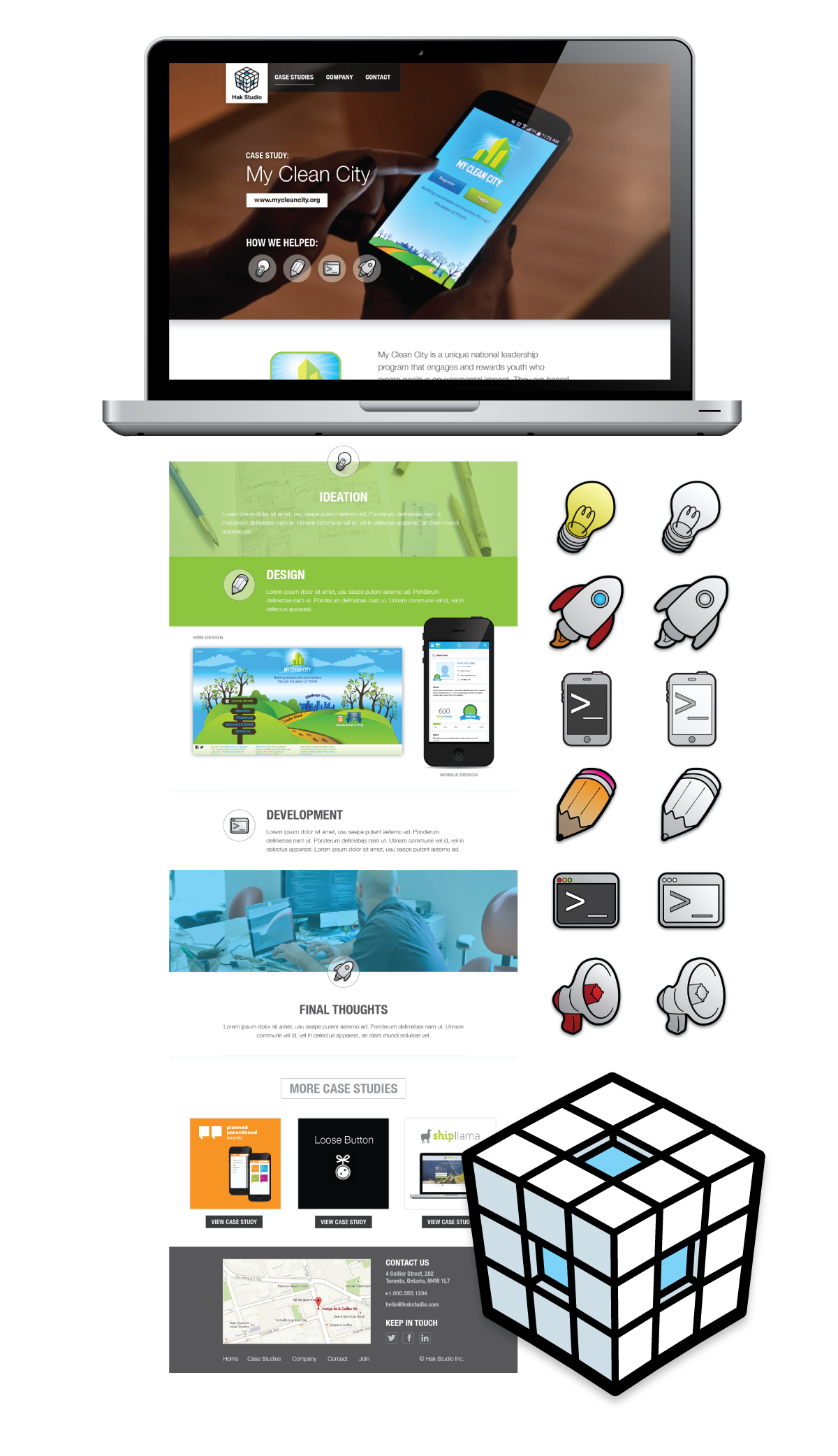While the team was building websites, I was tasked with iconography and graphic design for our clients.